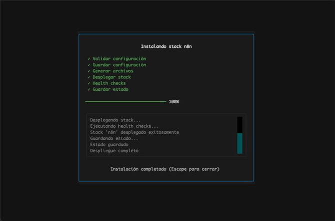 Tras confirmarla, aparecerá la siguiente pantalla una vez completada la instalación: